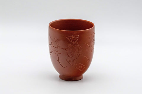 This Tokoname-yaki yunomi (teacup) features a delicate engraving of a lady in kimono. Made by Kanamizu (金水).
