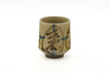 This unique yunomi (teacup) features a beige glaze decorated with abstract motifs.Dimensions:6.2cm (2.4in) - width7.5cm (3in) - height165ml - capacityCondition: Very goodThis vintage Japanese item ships from Thailand.