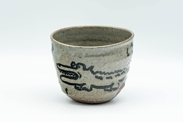 This wabi-sabi yunomi (teacup) features a grey glaze decorated with an alligator.