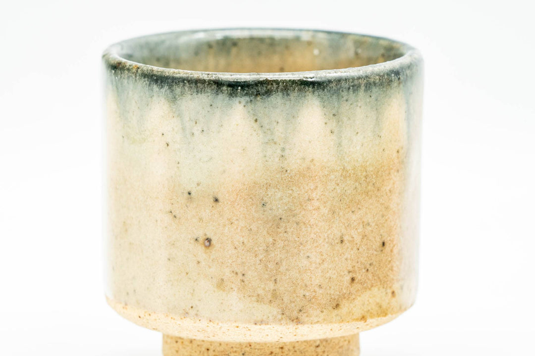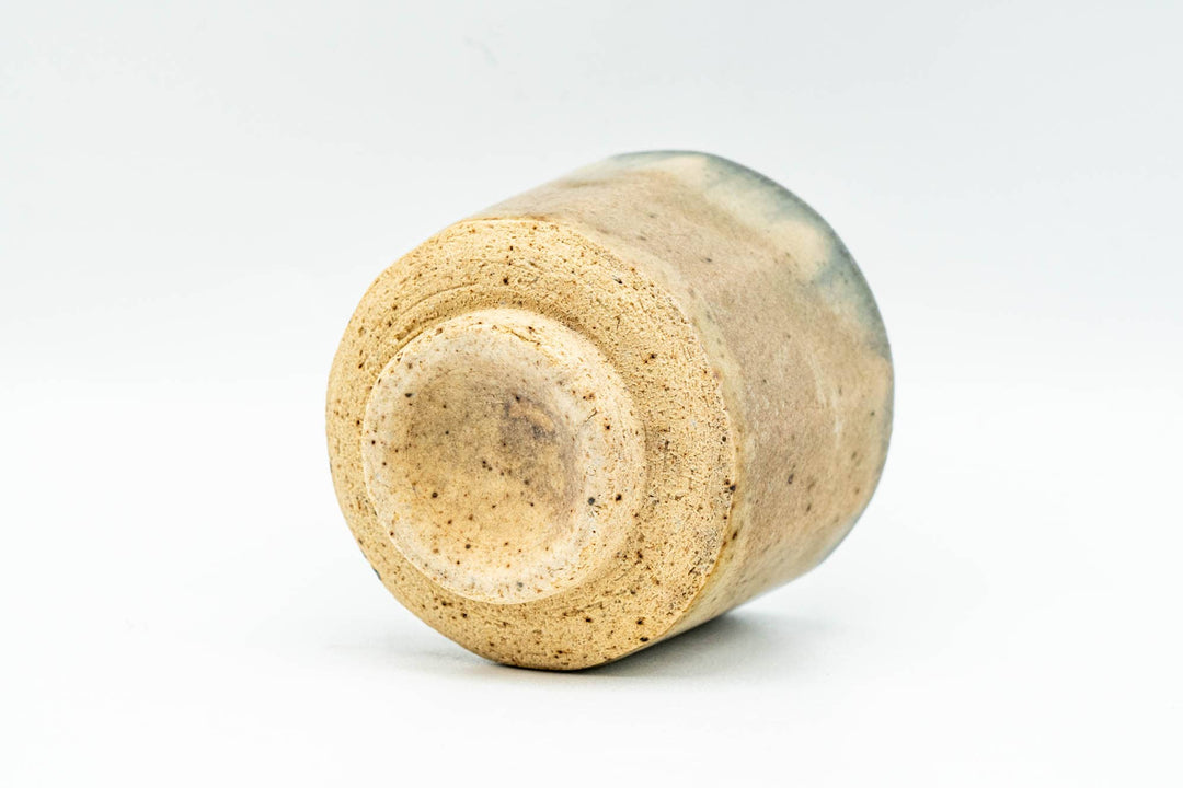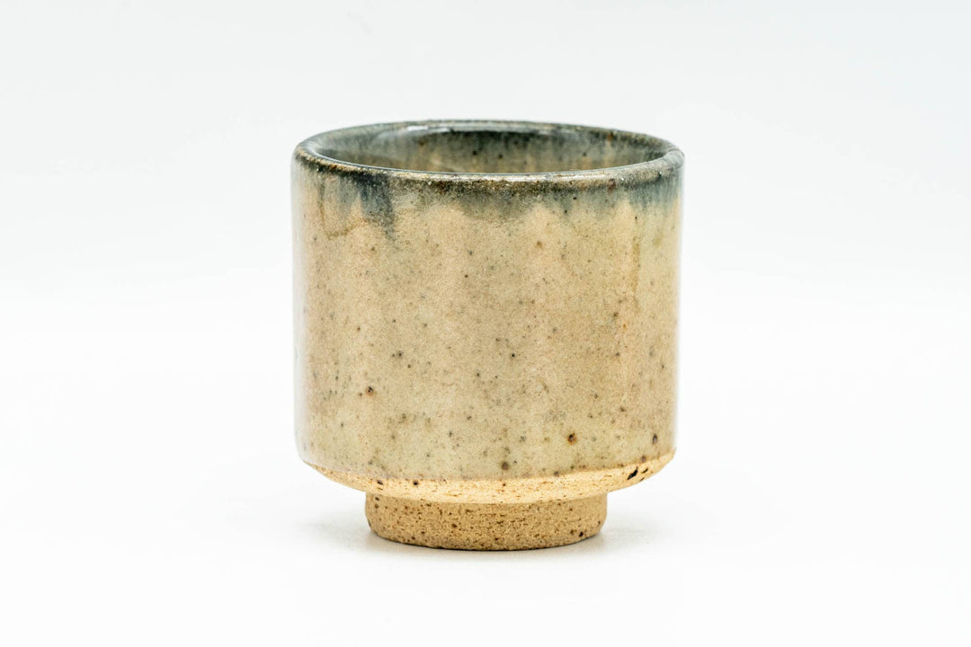 This guinomi (small teacup) features a beautiful beige and black accented glaze around its rim.
