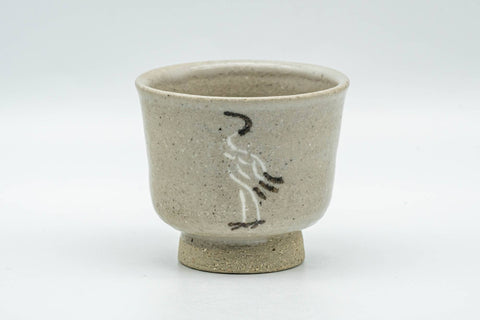 This guinomi (small teacup) features a beige glaze decorated with an egret.