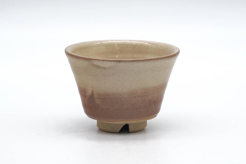 This asagao-gata Hagi-yaki yunomi (teacup) features a dark beige and milky glaze.