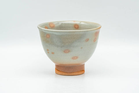 This Hagi-yaki yunomi (teacup) is decorated with a beige glaze and pink gohonte spots.