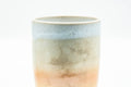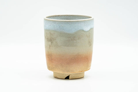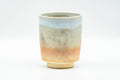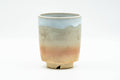 This tsutsu-gata Hagi-yaki yunomi (teacup) features a weathered beige, pink, and white glaze.