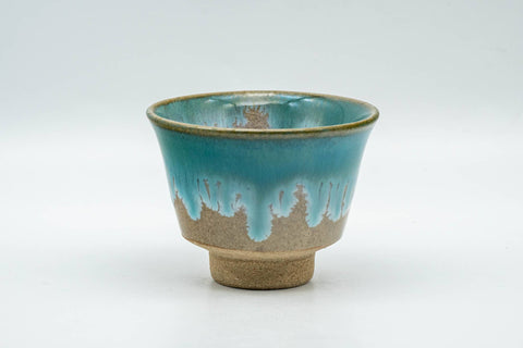 This asagao-gata Agano-yaki yunomi (small teacup) features a wonderful turquoise drip-glaze.