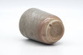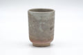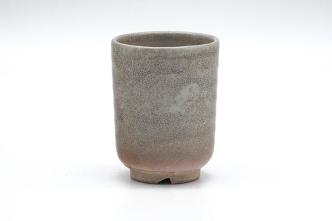 This tsutsu-gata Hagi-yaki yunomi (teacup) features a very weathered beige glaze.