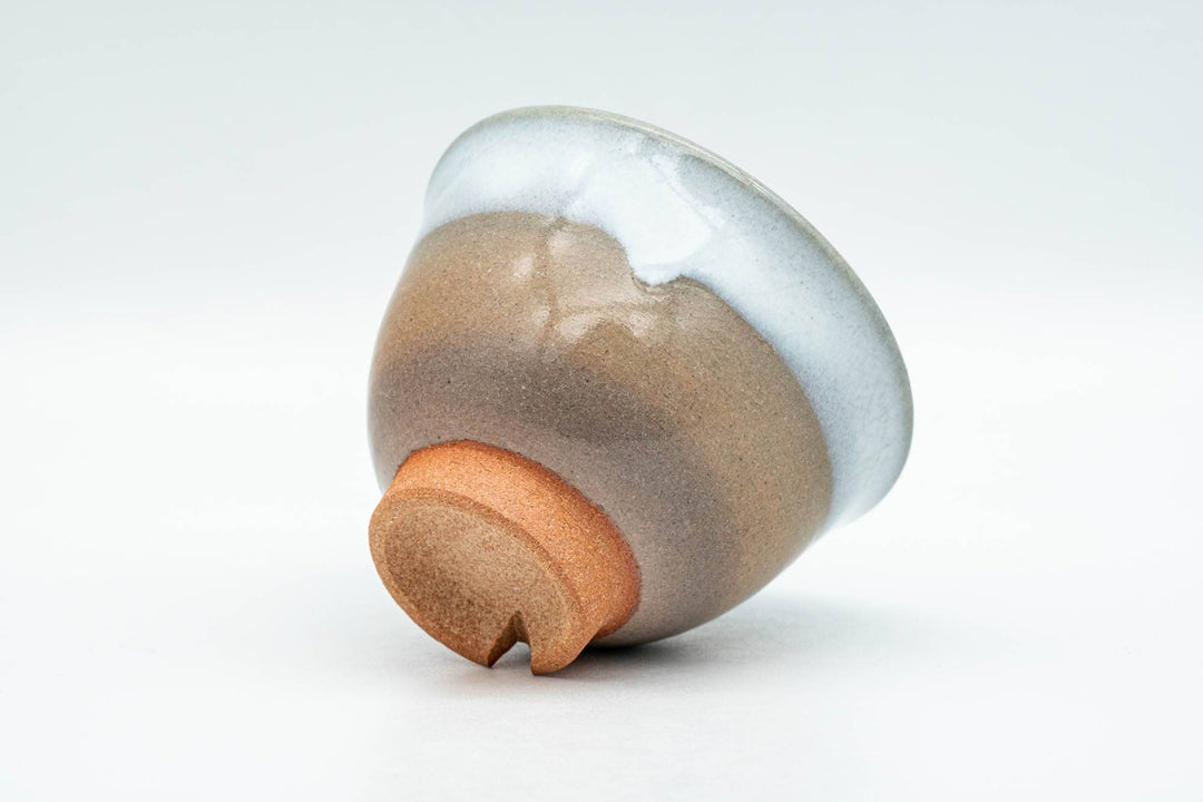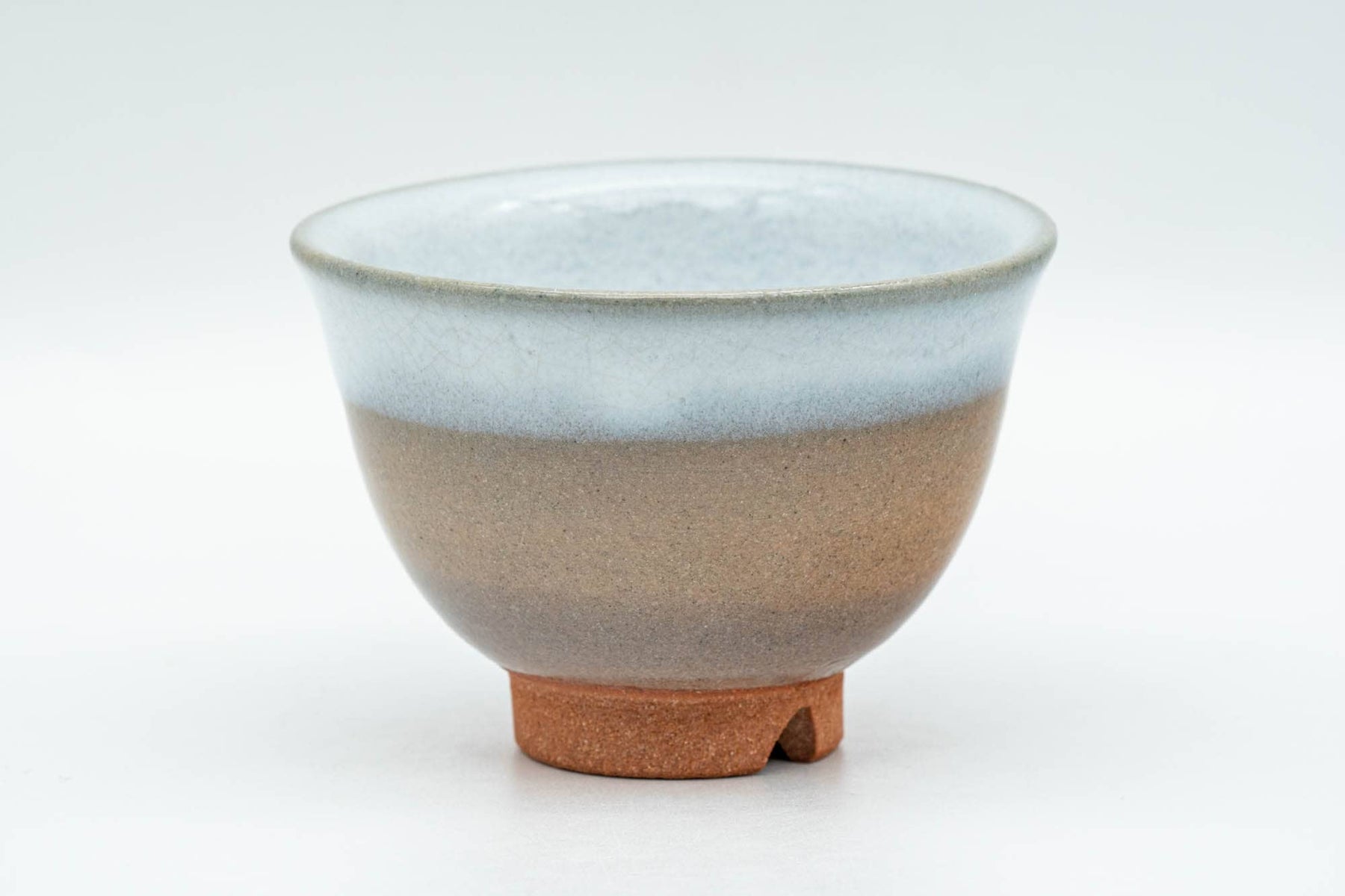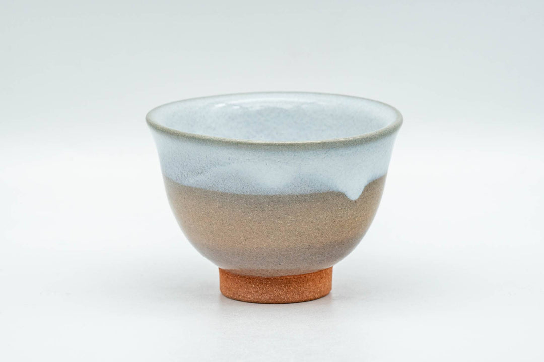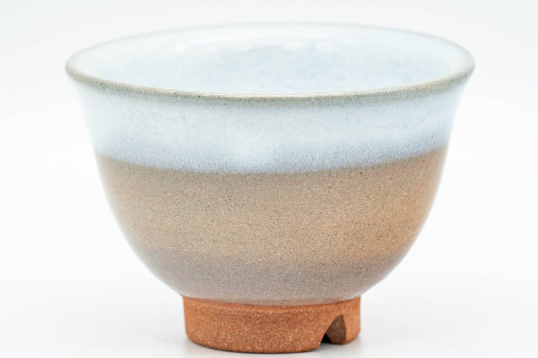 This crisp Hagi-yaki yunomi (teacup) features a beige and white glaze over its upper body.