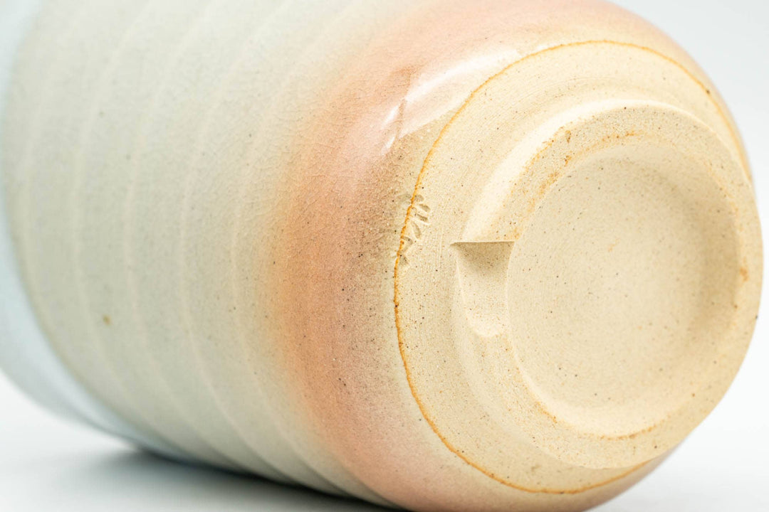 This tsutsu-gata Hagi-yaki yunomi (teacup) features a classic beige and white glaze.