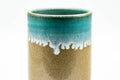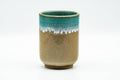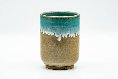 This Agano-yaki yunomi (teacup) features a dark beige and blue drip-glaze.