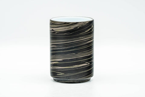 This tsutsu-gata Tokoname-yaki yunomi (teacup) features a wonderful black and grey marbled nerikomi clay pattern and a white inner-glaze.
