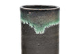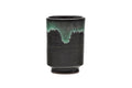 This Agano-yaki yunomi (teacup) features a sleek black and turquoise drip-glaze over its narrow cylindrical body.