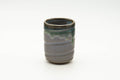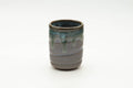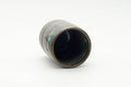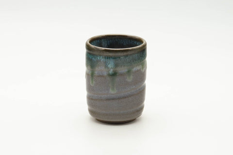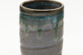 This tsutsu-gata Agano-yaki yunomi (teacup) features a dramatic blue and green drip-glaze.