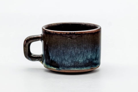 This ushirode yunomi (rear-handled teacup) features a deep blue hare's fur drip-glaze.Dimensions:10.5cm (4.1in) - width5.7cm (2.2in) - height140ml - capacityCondition: Very goodThis vintage Japanese item ships from Thailand