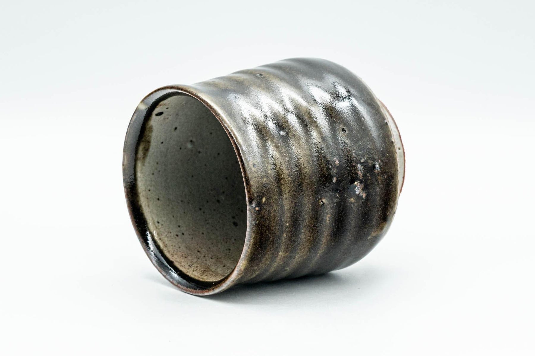 This spiraling yunomi (teacup) features an intricate milky brown and white glaze.