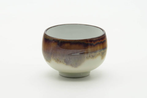 This Arita-yaki yunomi (teacup) features a brown and yellow hare's fur glaze with a white interior that's great for showing off the true colour of your tea.