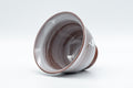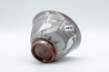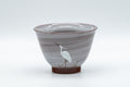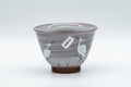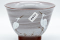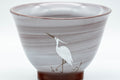 This tulip-shaped yunomi (teacup) features a brushed white glaze over brown clay, decorated with painted white egrets. Made by 三陶楽.