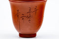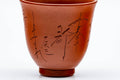 This Tokoname-yaki guinomi (small teacup) is made from red shudei clay and beautifully engraved with calligraphy.
