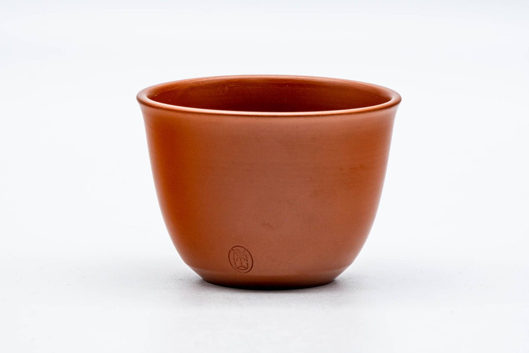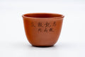 This Tokoname-yaki yunomi (teacup) is made from red shudei clay and engraved with calligraphy.