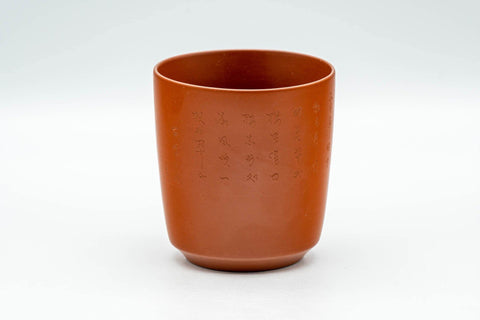 This Tokoname-yaki yunomi (teacup) features a smooth body engraved with calligraphy.