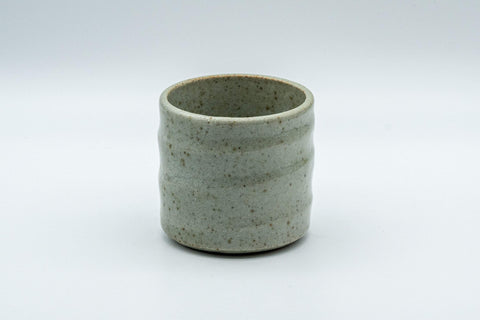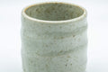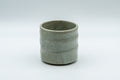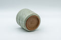 This tsutsu-gata yunomi (teacup) features a spiral design and a mint green celadon glaze.