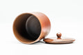 This tsutus-gata Bizen-yaki lidded yunomi (teacup) features a beautifully sleek, earthy clay body.