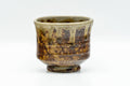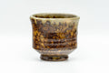 This yunomi (teacup) features an earthy brown and green drip-glaze.