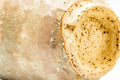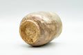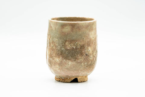 This wonderful Hagi-yaki yunomi (teacup) features a weathered earthy beige-brown and spotted gohonte glaze.