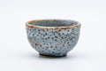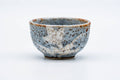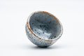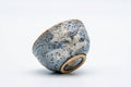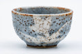 This small Mino-yaki guinomi (small teacup) features a blue shino glaze decorated with a floral motif.