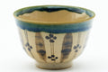 Oribe-yaki (織部焼) is a type of Japanese pottery known for its free flowing glazes and asymmetrical, hand-formed shapes. Dating in the late 16th century, Oribe ware takes its name from legendary tea master Furuta Oribe (古田 織部) who is believed to have played a large part in its development. Oribe wares are decorated with abstract designs and splashes of free-flowing vibrant green or deep black glaze. With these distorted shapes and novel decorations, Oribe-yaki exudes a charm that matches Furuta Oribe’s philosophy of hyouge (へうげ) or playfulness. One of the most popular styles of Oribe ware is Ao-Oribe or Green Oribe, which is decorated with geometric patterns painted with an iron glaze and then partially covered in a vibrant green copper-sulfate glaze which contrasts against the light background.