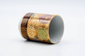 This large tsutsu-gata Kutani-yaki yunomi (teacup) is made from porcelain and decorated with an extravagant array of floral decorations.