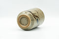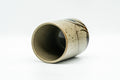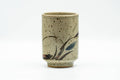This tsutsu-gata Karatsu-yaki yunomi (teacup) features a crazed green glaze decorated with a floral motif.