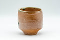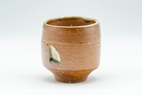 This Bizen-yaki yunomi (teacup) features carved notches with ash green glaze.