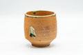 This Shigaraki-yaki yunomi (teacup) features carved notches with ash green glaze.