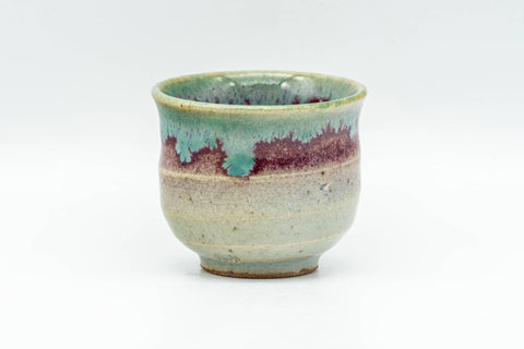 This guinomi (small teacup) features a beautiful beige and green-purple drip-glaze