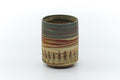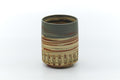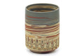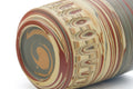 This stunning Tokoname-yaki yunomi (teacup) is made from yellow, green, and red clay kneaded together in the nerikomi (練り込み) technique. The cuts made to create this pot's faceted shape reveal even more layers and patterns of marbling.