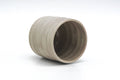 This spiraling tsutsu-gata Hagi-yaki yunomi (teacup) features a solid, weathered grey glaze.