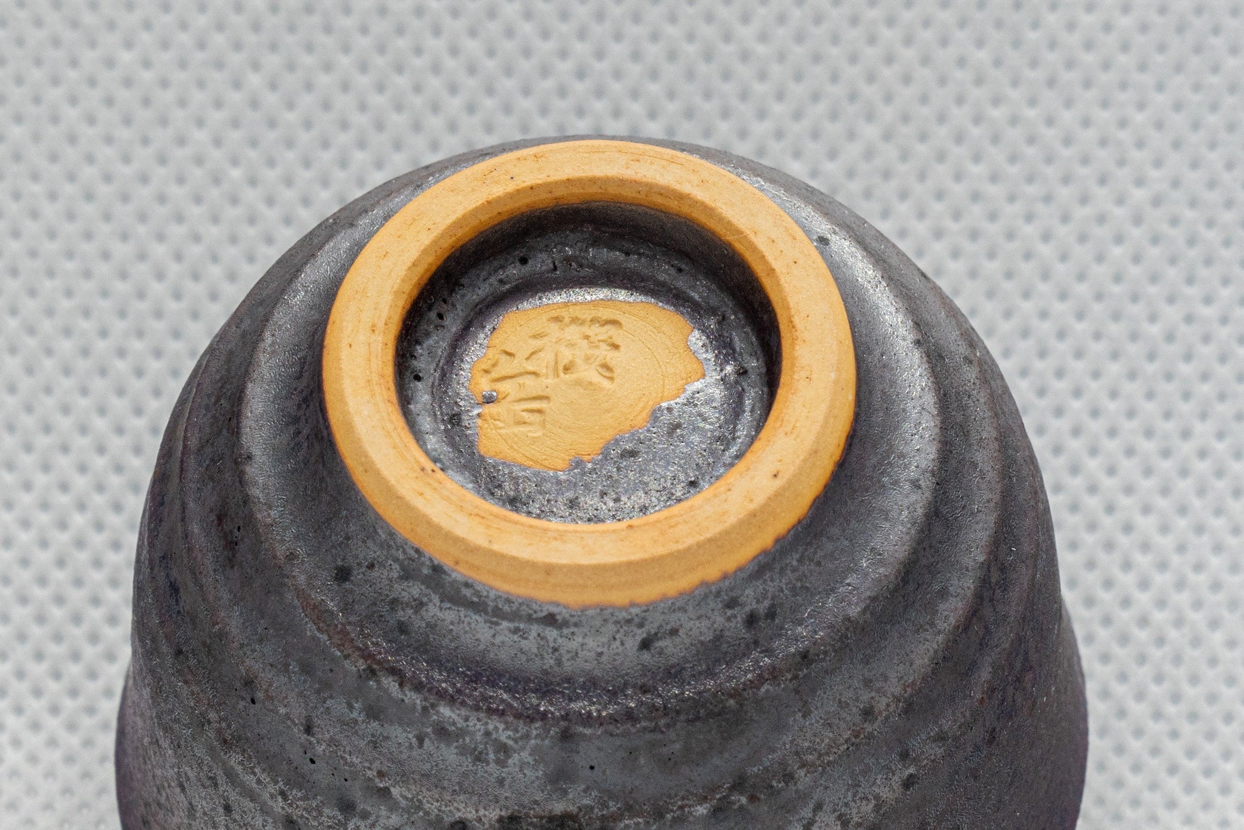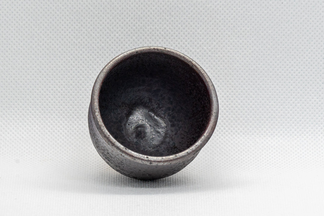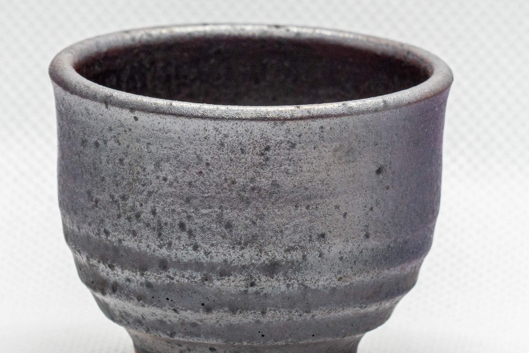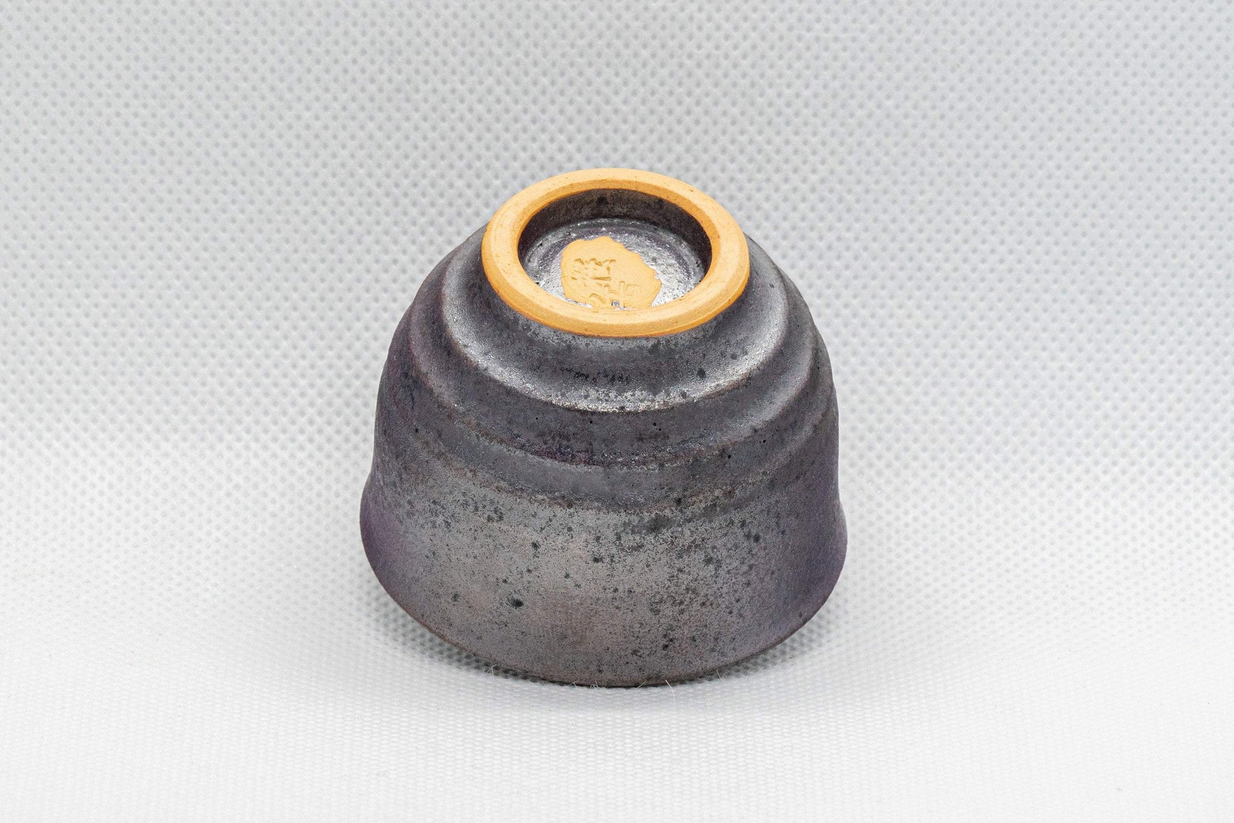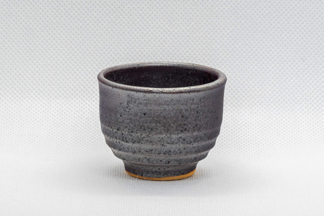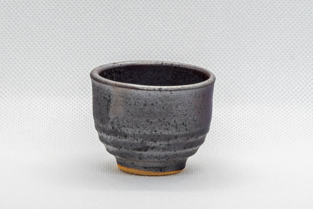 This guinomi (small cup) features a metallic iron glaze over its ribbed base and smooth walls. Made by 桜伝