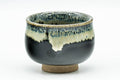 This guinomi (small teacup) features a jet black glazed body with a beige hare's fur drip-glaze over its lip.