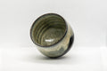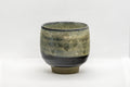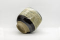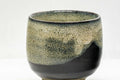 This yunomi (teacup) features a jet black glaze overlaid with a mottled yellow-green glaze. Made by Ogata (小勝田)