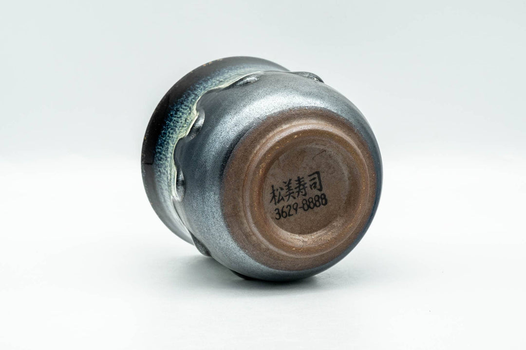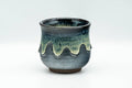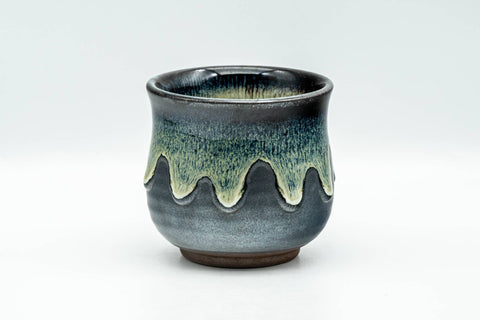 This large yunomi (teacup) features a thick metallic and blue-green drip-glaze.