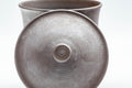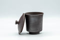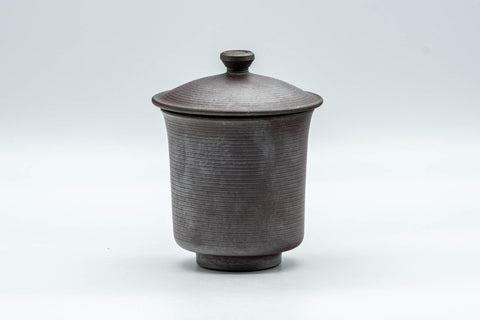 This lidded Banko-yaki tsutsu-gata yunomi (teacup) is entirely unglazed. Lidded teacups are traditionally used to keep the heat in and the dust out.