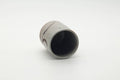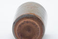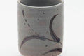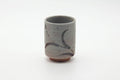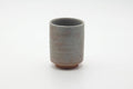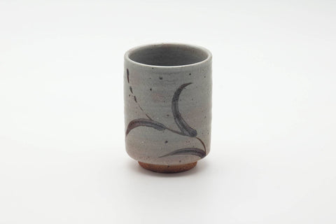 This tsutsu-gata Karatsu-yaki yunomi (teacup) features a grey glaze decorated with long grass.