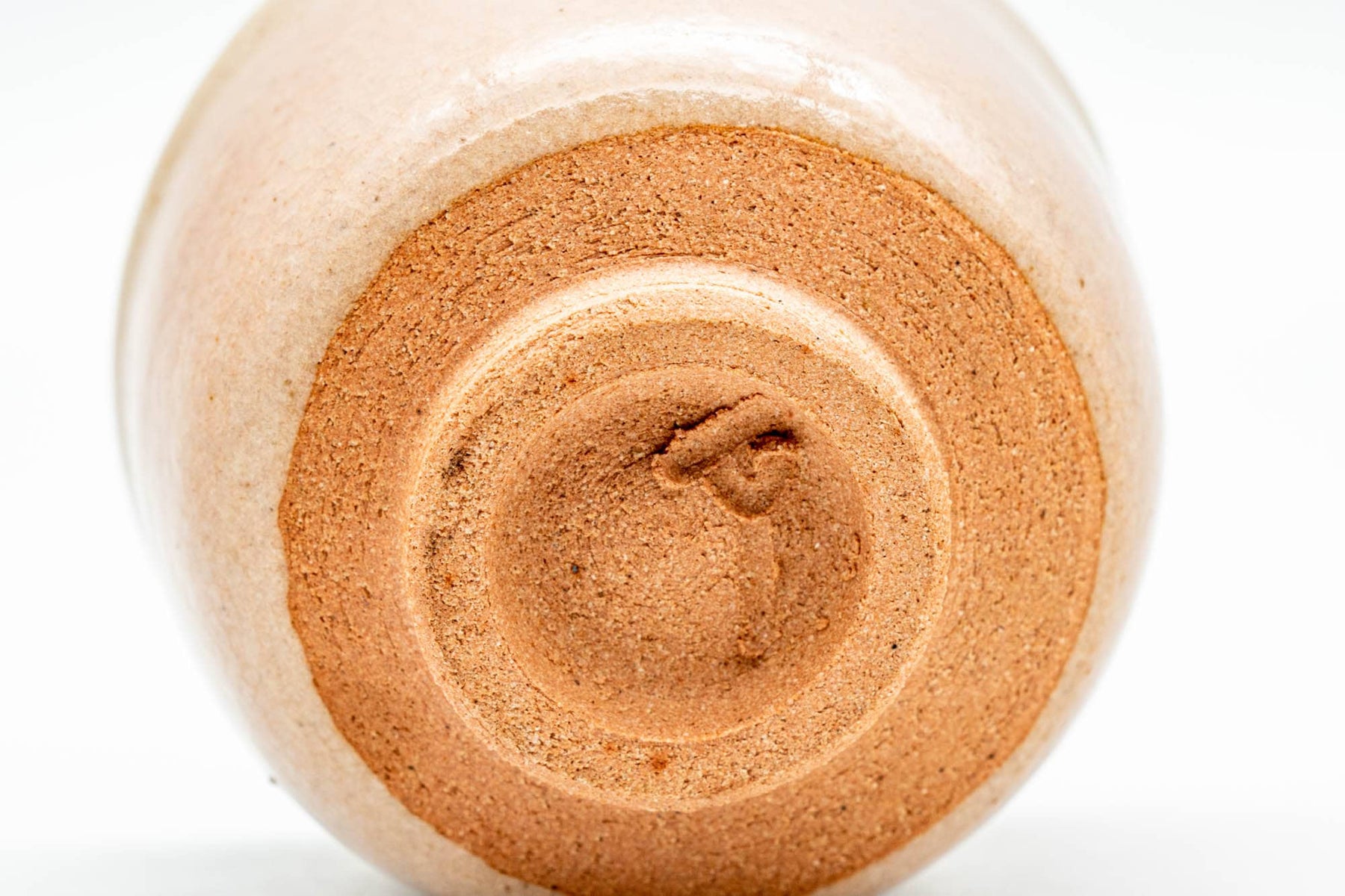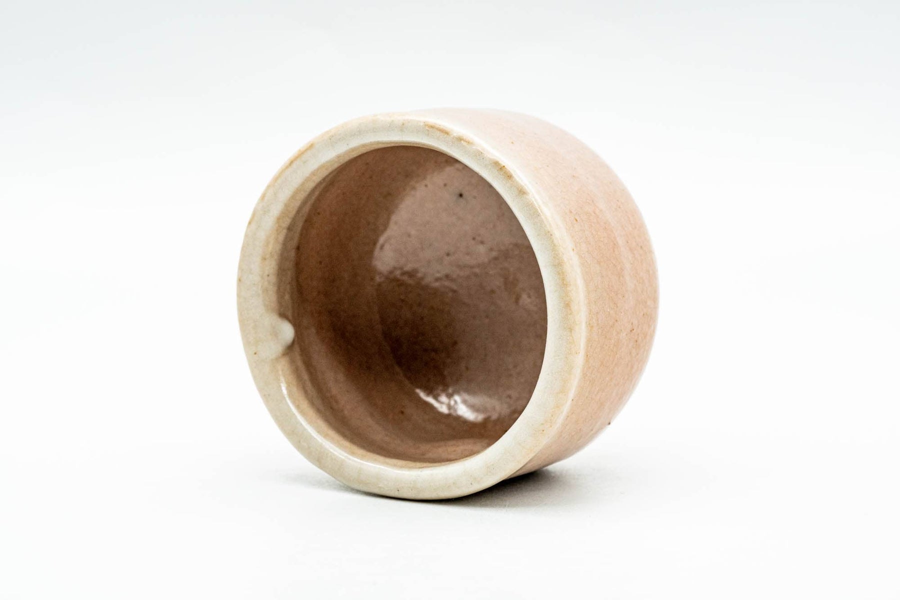 This elegant guinomi (small teacup) features a smooth pink glaze and a thumb indentation for style.