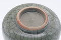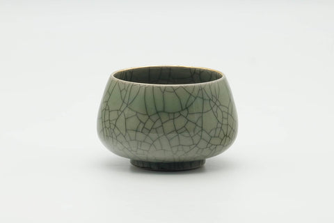 This wonderful Obori Soma-yaki yunomi (teacup) features a plump body with a crazed and spotted green celadon glaze.