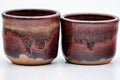 This pair of meoto yunomi (teacups) feature a magnificently mottled and textured red glaze