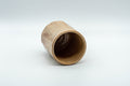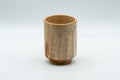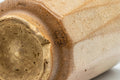 This Hagi-yaki tsutsu-gata yunomi (teacup) is glazed in a crazed beige glaze and features a faceted design that transitions into a smooth circular profile towards the lip. Stamped Sakayama (坂山).