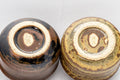 This set of five tsutsu-gata guinomi (teacups) each feature a spiraling clay body with their own unique glaze, from brown to white cream to green to red to orange shino glaze.