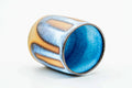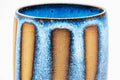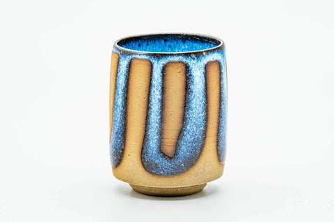 This tsutsu-gata Bizen-yaki yunomi (teacup) features a solid sky blue glazed interior with an abstract exterior glaze pattern.