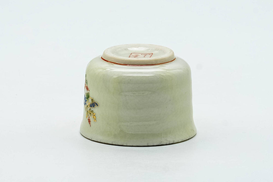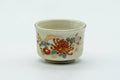 This Kutani-yaki guinomi (small teacup) features a smooth beige glaze decorated with flowers. Its tiny capacity makes it perfect for gyokuro sessions.