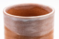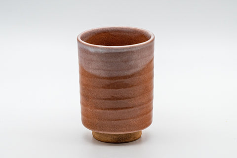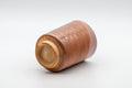 This tsutsu-gata Hagi-yaki yunomi (teacup) features a crazed warm orange glaze with a white over glaze around the lip.